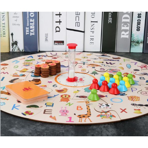 Sản phẩm Đồ chơi Detective Party là trò chơi tương tác gia đình rất thú vị có thể giúp bé học hỏi, phát triển các kĩ năng trên. Bộ sản phẩm gồm: bảng gỗ, đồng hồ cát, thẻ bài, đồng tiền hình ngôi sao và núm gỗ. Đầu tiên, bé cần ghép các mảnh ghép lại để được bảng gỗ hoàn chỉnh có đường kính 45cm. Bảng gỗ được in rất nhiều hình theo chủ đề chữ cái, số, con vật, đồ ăn,...