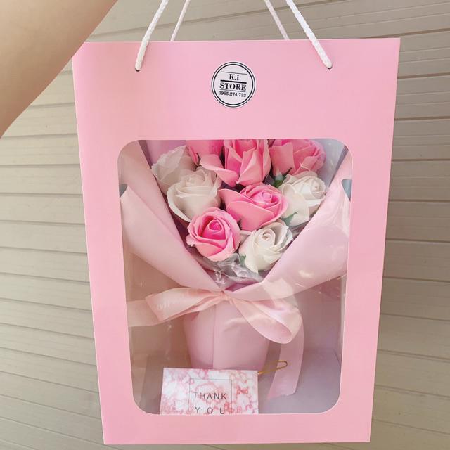 Túi hoa hồng sáp 11 bông kèm thiệp