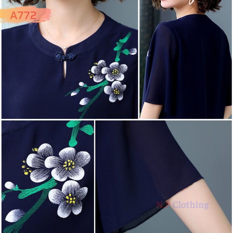 Quà 20/10 cho mẹ chồng - Áo trung niên thêu hoa đẹp trang nhã