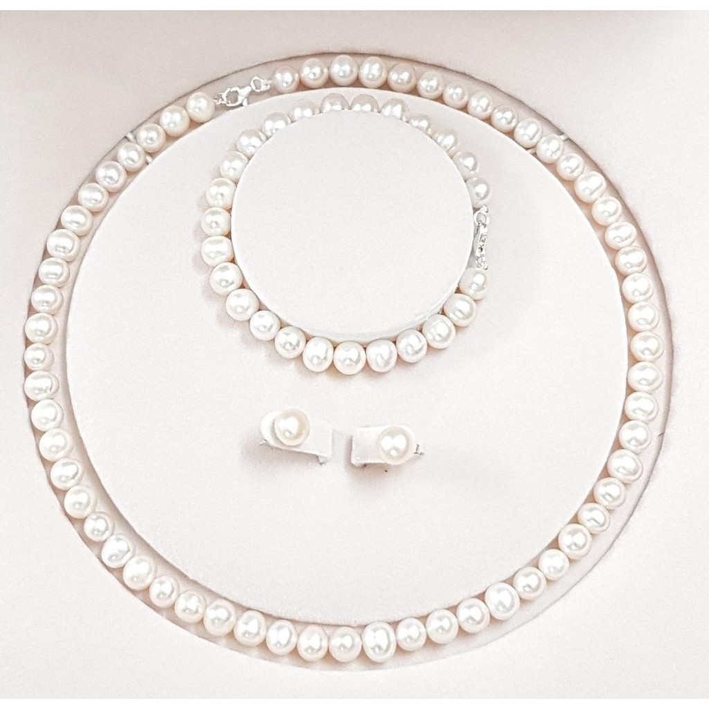Bộ trang sức bao gồm: 1 dây chuyền, 1 bông tai và 1 lắc tay đi kèm được đựng trong hộp đựng sang trọng để bạn đem đi tặng. Chất liệu của trang sức là ngọc trai nuôi có độ trắng sáng cao, không bị xỉn màu. Dây chuyền có độ dài khoảng 45cm để phù hợp với kích thước cổ của nhiều chị em. Khi đeo bộ trang sức lên người sẽ giúp mẹ toát lên được thần thái tự tin, sang trọng và một nhân cách cao đẹp, quý phái, toả sáng trước tất cả mọi người.
