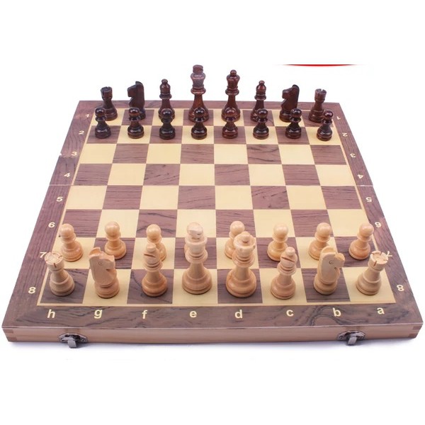 Bộ cờ vua được làm bằng gỗ cao cấp với kích thước các quân cờ chuẩn cuộc thi quốc tế. Bộ cờ vua gồm 64 ô với 2 màu xếp cách nhau với các quân cờ: Tốt, Xe, Tượng, Mã, Hậu và Vua. Bộ môn cờ vua này đã xuất hiện từ thế kỷ thứ 16 và các nhà lý thuyết sáng tạo đã tạo ra rất nhiều chiến thuật thú vị để chiến thắng trên từng bước chơi. Các quân cờ nguyên khối được chạm khắc hoàn hảo, màu sắc và các đường uốn cong mượt mà. Chỉ cần nhìn vào bộ cờ vua này, chắc hẳn bạn cũng sẽ có hứng khởi để tìm hiểu bộ môn thể thao hay nghệ thuật độc đáo này.