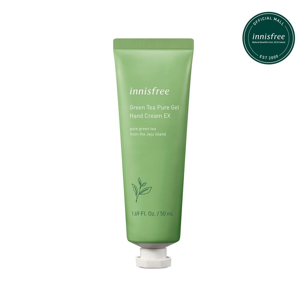 Gel dưỡng da tay từ trà xanh innisfree Green Tea Pure Gel Hand Cream EX 50ml có xuất xứ ở Hàn Quốc, được chiết xuất từ trà xanh hữu cơ, trồng ở vùng đảo Jeju, thành phần dưỡng ẩm này có chứa 16 loại amino acid khác nhau, đậm đặc gấp 3.5 lần so với trà xanh thông thường. Nước của trà xanh được xử lý bởi công nghệ Dual-Moisture-Rising có khả năng lưu giữ dưỡng chất trọn vẹn. Gel dưỡng da tay từ trà xanh innisfree Green Tea Pure Gel Hand Cream EXgiúp bổ sung, tăng cường độ dưỡng ẩm và chăm sóc đôi tay trở nên mềm mại, mịn màng. Sản phẩm có kết cấu là dạng gel trong suốt, không gây cảm giác nhờn dính khi thoa lên da.