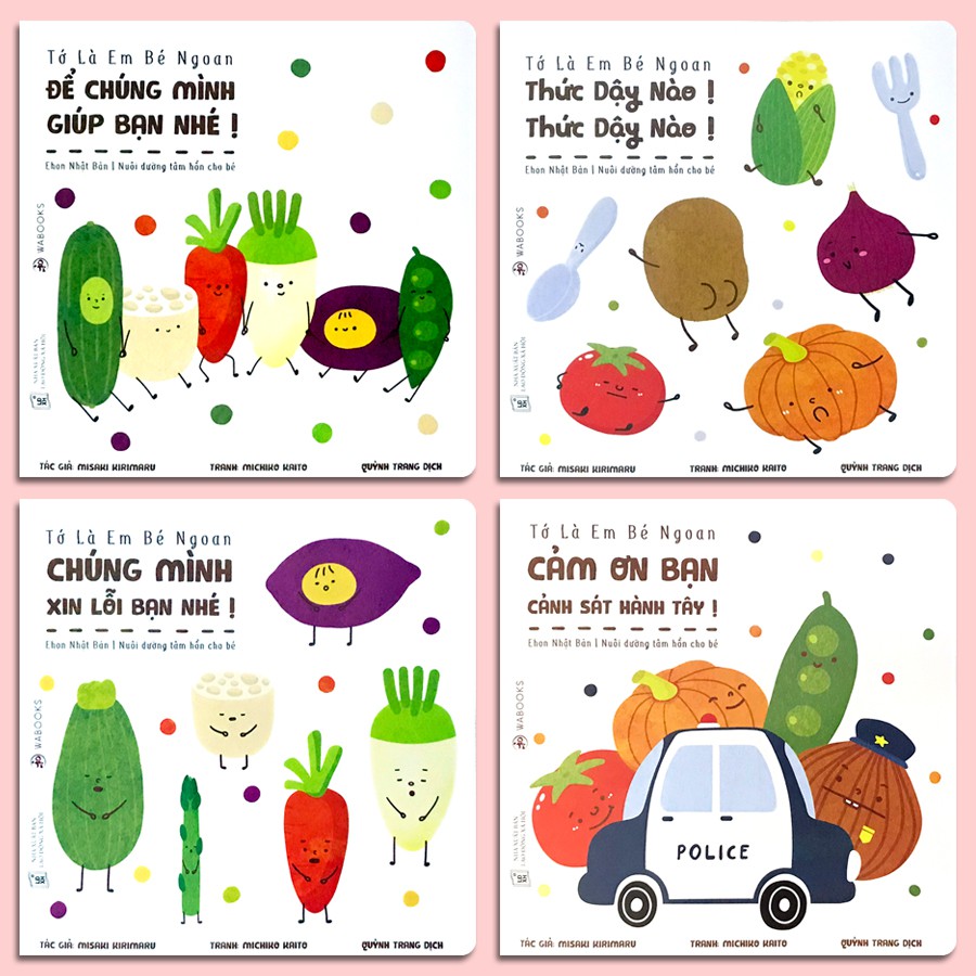 Sách Ehon – Set 4 cuốn Tớ là em bé ngoan – dành cho trẻ từ 2 tuổi sẽ mang lại những lợi ích lớn cho sự phát triển của con. Mỗi set sách lại gồm có 4 cuốn với các tựa đề như sau “Cảm ơn bạn cảnh sát hành tây!”, “Chúng mình xin lỗi bạn nhé!”; “Để chúng mình giúp bạn!”, “Thức dậy nào! Thức dậy nào!”. Qua giáo trình của sách, bé sẽ sớm nhận thức được cách ứng xử lịch sử và văn minh hàng ngày.