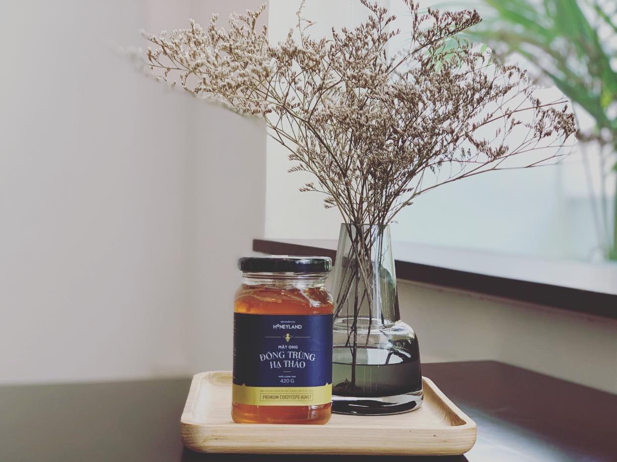 Mật ong đông trùng hạ thảo là sản phẩm được kết hợp bởi mật ong rừng Tây Bắc và nấm đông trùng hạ thảo sấy thăng hoa. Sự kết hợp này không chỉ giúp đông trùng hạ thảo dễ uống hơn nhờ vị ngọt của mật ong mà còn là bài thuốc để hỗ trợ điều trị ho, viêm phổi, hen suyễn và viêm phế quản cực tốt. Đồng thời sản phẩm còn giúp dưỡng da cực kỳ hiệu quả, làm chậm quá trình lão hoá ngay từ bên trong. Đối với người già khi sử dụng đông trùng hạ thảo kết hợp cùng mật ong sẽ giúp nâng cao sức khoẻ miễn dịch, tăng cường trí nhớ và hạn chế mắc bệnh.