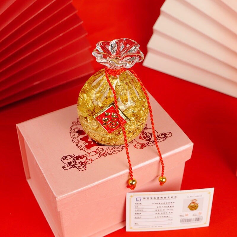 Theo quan niệm phong thuỷ phương Đông, bao tiền tài lộc là vật tượng trưng cho tiền bạc sung túc, khi trưng bày trong nhà sẽ giúp gia chủ thu hút may mắn, gia đạo bình an, sức khoẻ tràn đầy, công danh thăng tiến, tài lộc dồi dào. Gia chủ có thể bày vật phẩm này ở ban Thần Tài, Ông Địa, tủ trang trí, quầy thu ngân,... để đạt hiệu quả cao nhất. Sản phẩm được làm từ chất liệu thuỷ tinh, bên trong chứa vàng lá 24K nguyên chất.