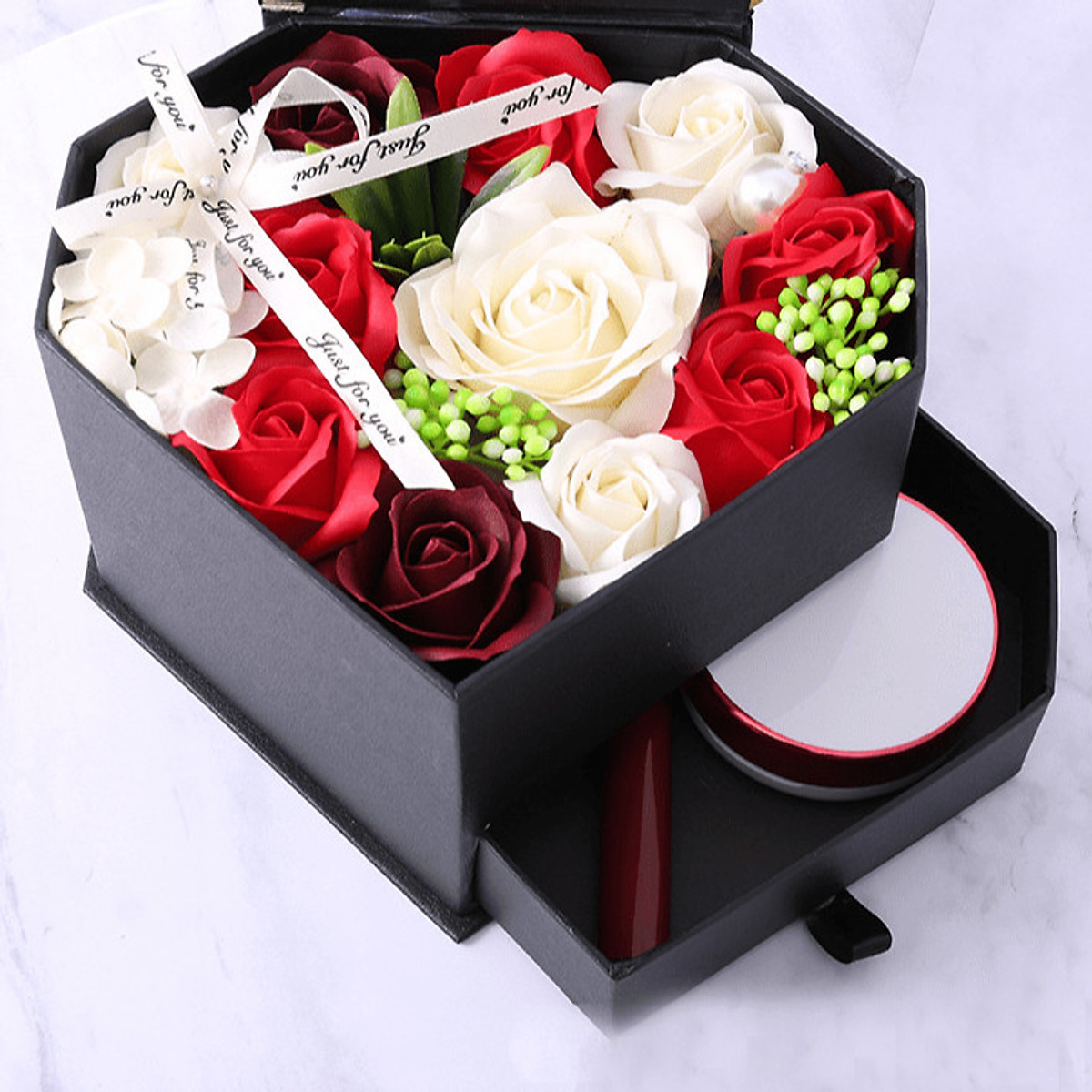 Hộp hoa hồng sáp thơm hình trái tim trang nhã có ngăn kéo đựng nước hoa và son