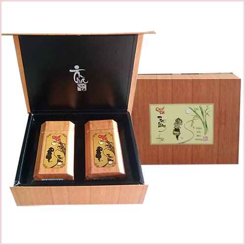 Hộp quà trà ô long Quê Ta vân gỗ