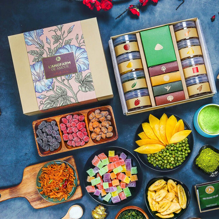 Set quà L'angfarm de Amour gồm 13 sản phẩm với các hương vị khác nhau từ kẹo được làm từ các loại quả đến các trái cây sấy khô, các loại trà mỗi sản phẩm đều mang một hương vị riêng và màu sắc bắt mắt ngon miệng. Các sản phẩm đều được chế biến theo quy trình nghiêm ngặt đảm bảo vệ sinh an toàn thực phẩm. Với phương châm khách hàng là trên hết, sản phẩm của L'angfarm de Amour sẽ luôn mang lại sự hài lòng trong từng sản phẩm. Chắc chắn khi thưởng thức các sản phẩm của L'angfarm de Amour khách hàng sẽ luôn muốn quay trở lại vùng đất Đà Lạt yên bình và mộng mơ.