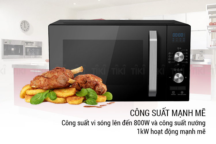 Lò vi sóng được làm từ chất liệu thép cao cấp, không ghỉ, không bị bong tróc cùng với mặt cửa kính cường lực giúp nhìn rõ đồ ăn bên trong đồng thời tăng thêm tính thẩm mỹ cho thiết bị. Với bảng điều khiển nút vặn kết hợp với màn hình điện tử với những thông số đầy đủ, rõ ràng, giúp người sử dụng một cách dễ dàng và nhanh chóng nhất, phù hợp với nhịp sống đang ngày càng hối hả, vội vàng.