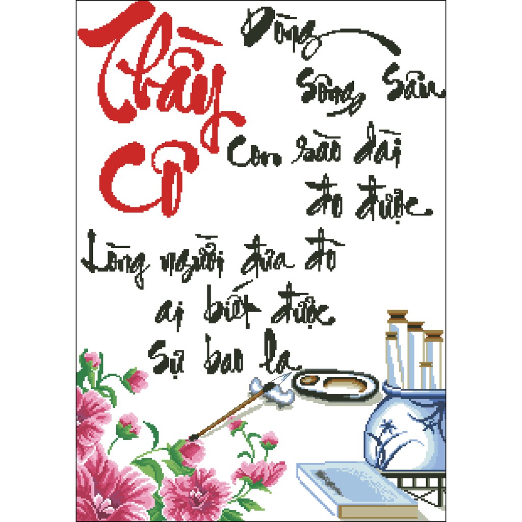 Tranh chữ thập thêu chữ "Thầy Cô" chỉ vỏn vẹn hai chữ nhưng nói lên được biết bao tấm lòng, sự kính trọng của bạn gửi đến người thầy, người cô của mình. Bộ sản phẩm tranh thêu bao gồm: kim, chỉ, vải, sách hướng dẫn thêu và bản hướng dẫn. Cách thêu được hướng dẫn chi tiết trong sách nên bạn có thể tự học được một cách đơn giản và nhanh chóng. Kích thước của tranh vừa phải, thích hợp để treo trang trí tại phòng khách. Sản phẩm vừa là một tác phẩm nghệ thuật vừa là đồ trang trí đầy tính thẩm mỹ. Chất liệu của vải thêu được làm từ cotton thiên nhiên có chất lượng cao, hàm lượng carbon thấp nên thân thiện với môi trường. Một bức tranh thêu do chính bạn làm ra sẽ là món quà tặng ý nghĩa và được các thầy cô trân trọng hơn.