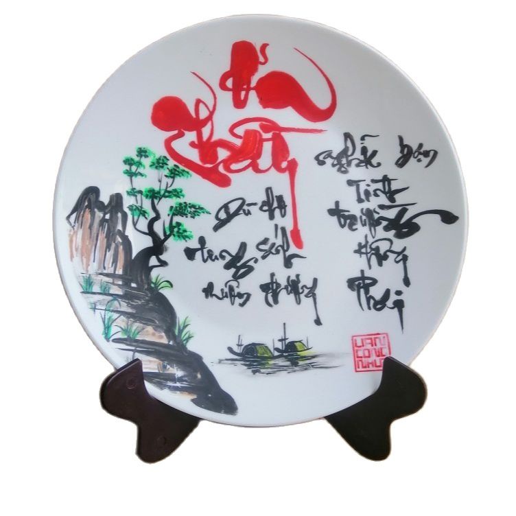 17. Đĩa trang trí vẽ chữ thư pháp