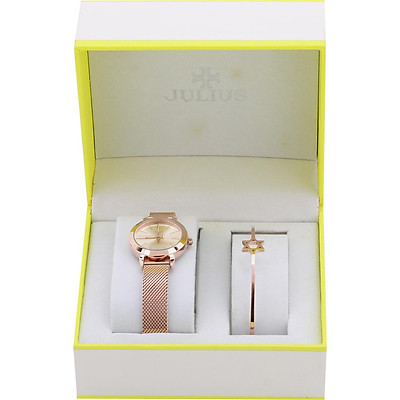 Combo đồng hồ nữ Julius và lắc tay màu vàng hồng thanh lịch