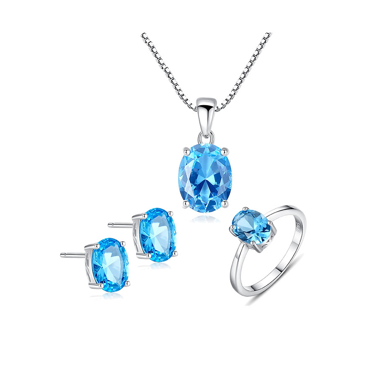 Set quà 20/10 trang sức nữ 3 món đính đá Topaz xanh thiên nhiên cao cấp