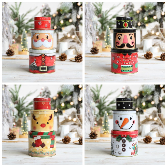 Hộp được làm từ thiếc với thiết kế kín đảm bảo món quà bên trong sẽ được bảo quản một cách tốt nhất. Thiết kế ba lớp riêng biệt, bạn hoàn toàn có thể đựng vào bên trong các loại kẹo hoặc món quà khác nhau. Khi mở quà sẽ là những hành trình thú vị dành cho người được tặng. Lớp sơn phủ bên ngoài rất bắt mắt với các gam màu sặc sỡ và mô phỏng những hình ảnh đặc trưng của Giáng Sinh nên hộp quà còn có thể sử dụng như một sản phẩm để trang trí nhà cửa.