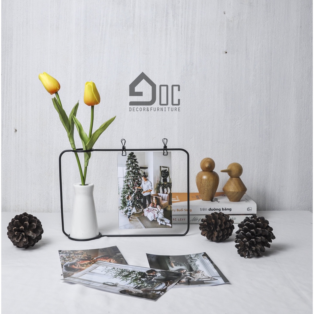 Đồ dùng trang trí sáng tạo cũng là một ý tưởng tặng quà hay trong dịp 20/10. Thứ nhất vì phái nữ vốn rất thích trang trí nhà cửa bằng những đồ dùng phong cách, thứ hai đây là một món quà trung tính dễ tặng và có giá trị sử dụng cao. Lọ hoa kết hợp khung ảnh sắt để ghi chú decor, treo postcard, in ảnh cá nhân trang trí để bàn sẽ là một sự kết hợp tuyệt vời mang phong cách, cá tính riêng của đồng nghiệp bạn và thiên nhiên. Giá treo làm bằng kim loại với kích thước 24x17cm, với hai màu sắc là vàng kim loại và đen. Set bao gồm một lọ hoa (tặng kèm hoa tulip), một khung ảnh sắt, hai kẹp và một bưu thiếp hoặc ảnh cá nhân chọn in.