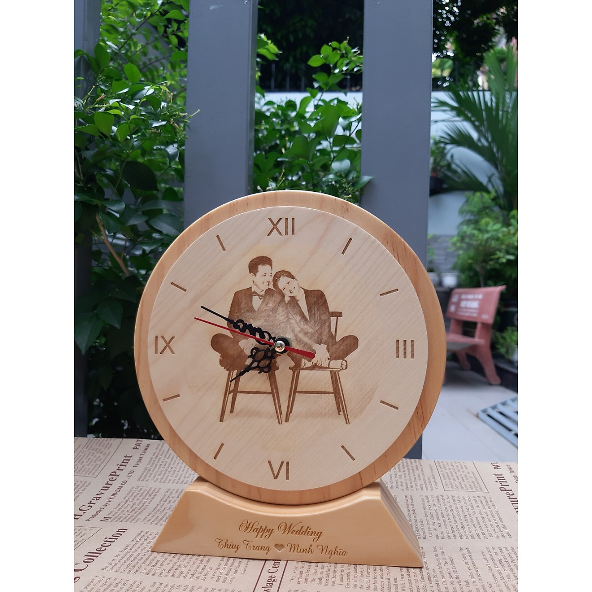 Đồng Hồ Gỗ Khắc Hình với chất liệu gỗ maple cao cấp, bề mặt đồng hồ sáng, vân gỗ trông tự nhiên, mềm mịn không chỉ đảm bảo tính thẩm mỹ mà còn khá bền với thời gian. Trên nền gỗ như vậy, bạn hoàn toàn có thể tận dụng để khắc hình hoặc tên của hai bạn lên trên, điều này sẽ tạo dấu ấn riêng đặc biệt và khiến chiếc đồng hồ thêm nét nghệ thuật hơn. Đây là dạng đồng hồ để bàn, tuy nhiên bạn cũng có thể treo tường nếu muốn. Ngoài ra, sản phẩm có mẫu mã độc đáo, mới lạ để các nàng có thể thoải mái lựa chọn chiếc đồng hồ đẹp, ưng ý mang ý nghĩa yêu thương dành cho người yêu của mình. Chiếc đồng hồ như một lời nhắc nhở nhẹ nhàng, hãy trân trọng từng khoảnh khắc khi bên nhau để mai sau sẽ không có gì hối tiếc.