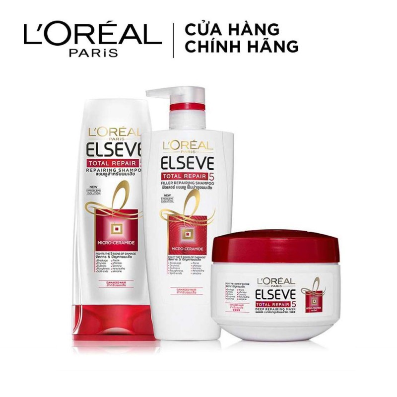Bộ sản phẩm chăm sóc tóc chống 5 dấu hiệu hư tổn 3 bước L'Oreal Paris Total Repair 5
