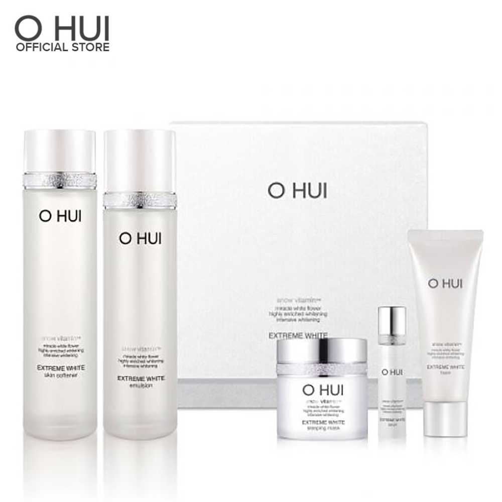 Set dưỡng trắng, trị nám và ngăn ngừa lão hóa Ohui Extreme White Snow Vitamin bao gồm 5 sản phẩm có công dụng đặc trị các vấn đề về da, thuộc dòng sản phẩm dưỡng trắng không gây kích ứng của Ohui. Các sản phẩm trong set có chứa thành phần Vitamin nấm tuyết ™ hàm lượng cao, từ đó giúp cải thiện hiệu quả làn da tối màu, đẩy lùi các dấu hiệu lão hóa hiệu quả.