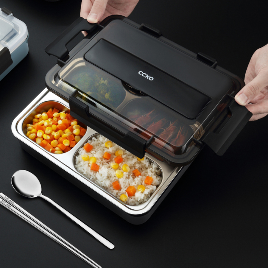 Hộp cơm được làm bằng chất liệu Inox 304 đảm bảo an toàn cho người sử dụng. Đặc biệt, sản phẩm được thiết kế chia ngăn để chứa được nhiều loại thức ăn cùng lúc mà không bị rò rỉ với mỗi ngăn đều có dung tích lớn. Bạn sẽ được tặng kèm đũa để tiện hơn lúc dùng bữa. Hộp cơm khi gấp gọn lại rất tiện lợi.