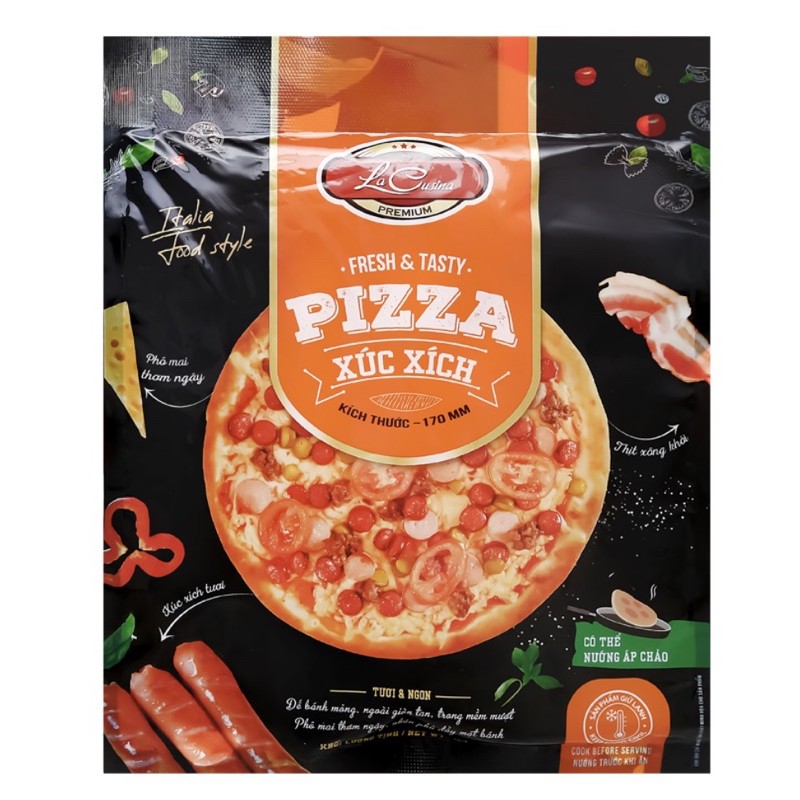 Pizza ăn liền cao cấp La Cusina là một sự lựa chọn đồ ăn nhanh cực kỳ hot hiện nay với hương vị thơm ngon, béo ngậy đặc trưng của phô mai cùng hương vị tinh tế của các loại gia vị. Chỉ cần nướng bánh pizza trong 8 phút là bạn đã có một bữa ăn ngon sẵn sàng để thưởng thức rồi. Sản phẩm có kích cỡ 18cm, nặng 180g với ba hương vị thơm ngon tuyệt hảo là pizza xúc xích, pizza hải sản và pizza bò băm. Với phần đế bánh mỏng, bên ngoài giòn tan, bên trong mềm mịn, nhân phủ kín mặt bánh, pizza ăn liền cao cấp La Cusina chắc chắn sẽ khiến bạn cảm thấy hài lòng.