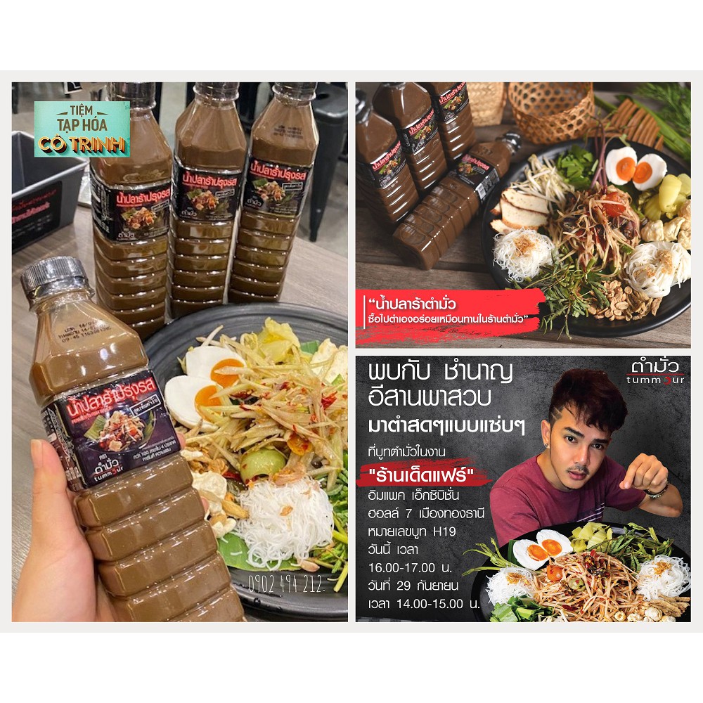 Mắm somtam có xuất xứ từ Thái Lan, sẽ giúp bạn tạo nên một món gỏi đu đủ thơm ngon, chuẩn vị Thái. Chỉ với 1 muỗng canh nước sốt somtam là bạn có thể trộn ngay được một phần gỏi đu đủ đầy hấp dẫn cho cả gia đình mình. Bạn có thể trộn chung với ớt, đậu phộng, đậu phe, tôm khô và đặc biệt là các loại hải sản tùy ý như tôm, mực… ăn kèm gọi với rau ngò gai, quế, diếp cá hoặc bún tươi.