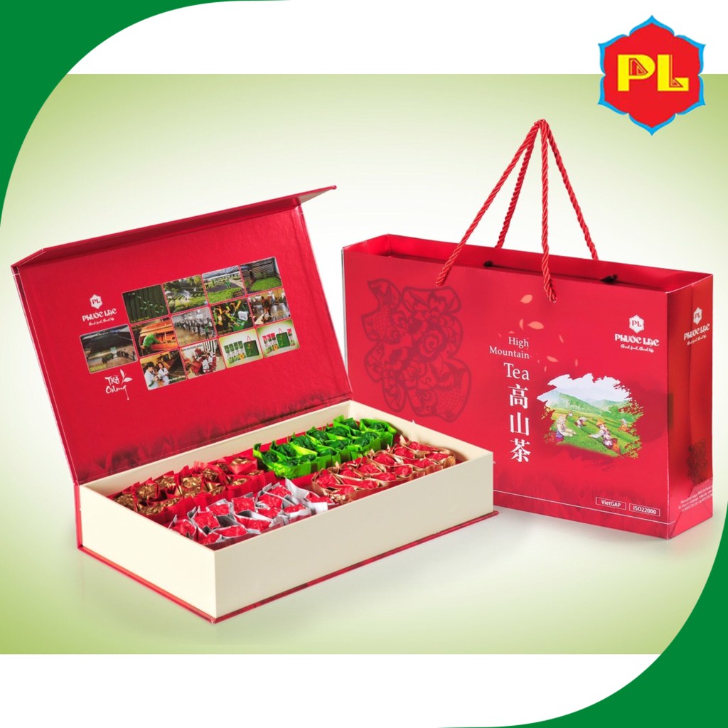 Sản phẩm được đóng gói trong hộp sang trọng cùng màu đỏ rực rỡ, bắt mắt, thể hiện cho không khí rộn ràng của Tết cổ truyền. Bạn có thể đặt mua hộp quà tặng này tại Trà Phước Lạc với giá 900.000 VND bằng cách nhấn vào đây.