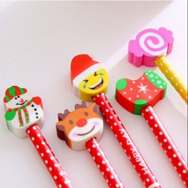 17. Bút chì Noel kèm tẩy dễ thương